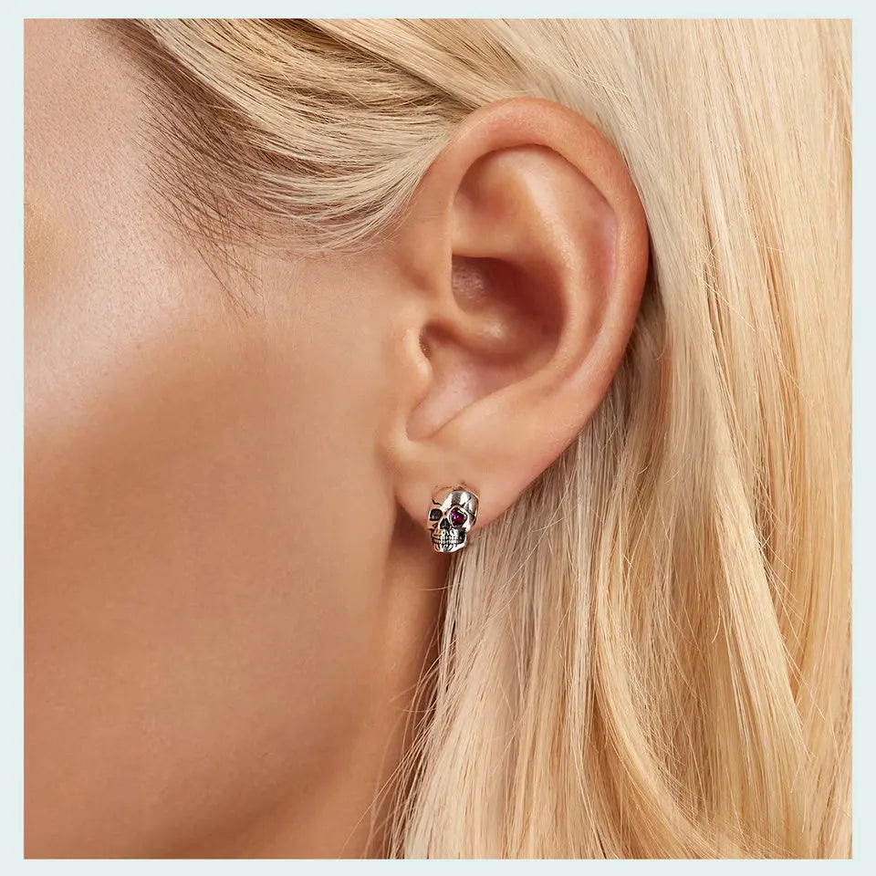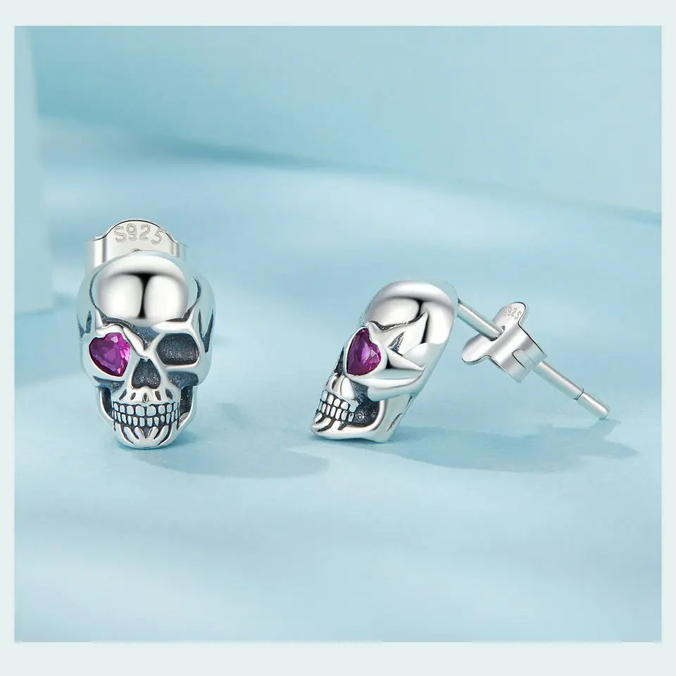 These skull stud earrings are the perfect accompanyment to your outfit or cosplay, featuring gemstone accent for a statement accessory.