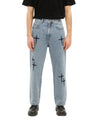 Bring the subtle streetwear vibe with these Celestial Jeans featuring intricately embroidered black stars scattered across the baggy denim.