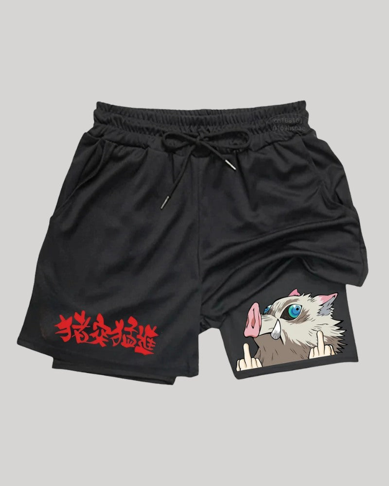 Inspired by Inosuke Hashibira from Demon Slayer, these Inosuke gym shorts capture his raw, chaotic energy in a high quality gym short.