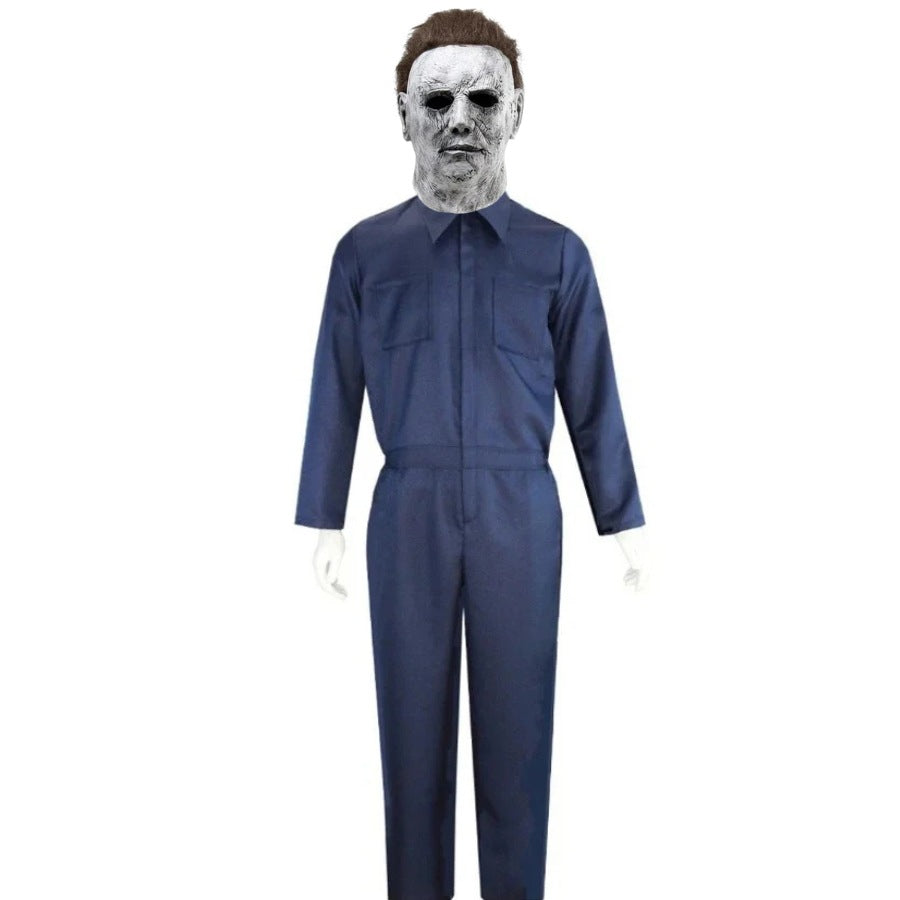 True to Movie: Faithfully replicates Michael Myers’ iconic look with a detailed dark blue coverall jumpsuit and haunting white mask.