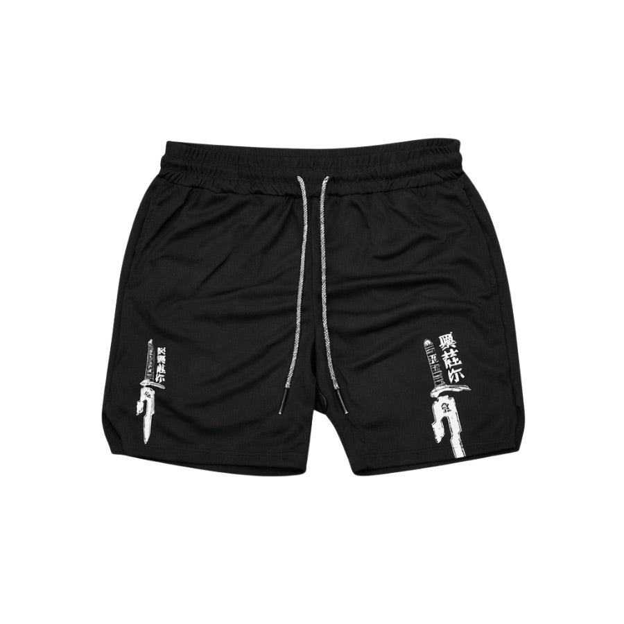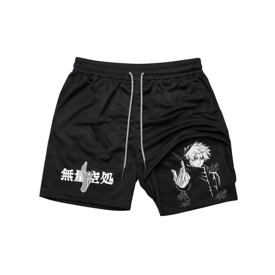 Push your physical limits with these Toji Gym Shorts inspired by the Jujutsu sorcerer, featuring Inverted Spear of Heaven design.